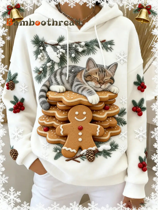 Women's Cat Printed Flannel Sweatshirt