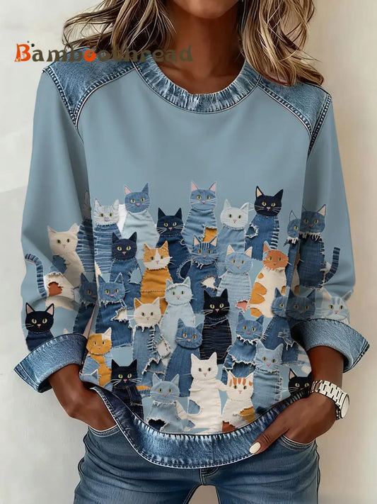 Women's Cute Cat Cozy Flannel Sweatshirt