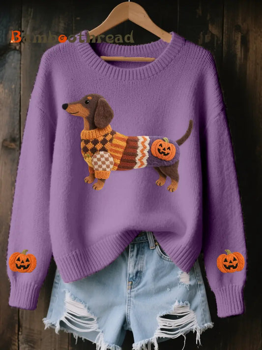 Women's Fuzzy Dog Felt Cozy Knit Sweater