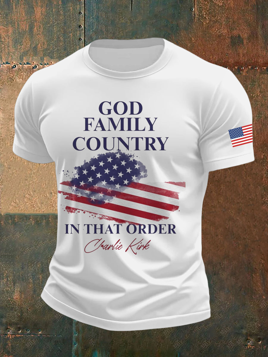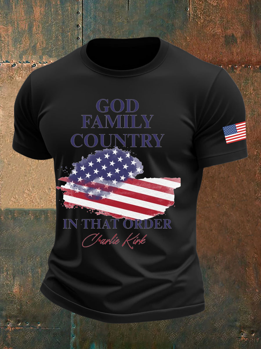 Men's God Family Country Charlie Kirk Printed T-shirt