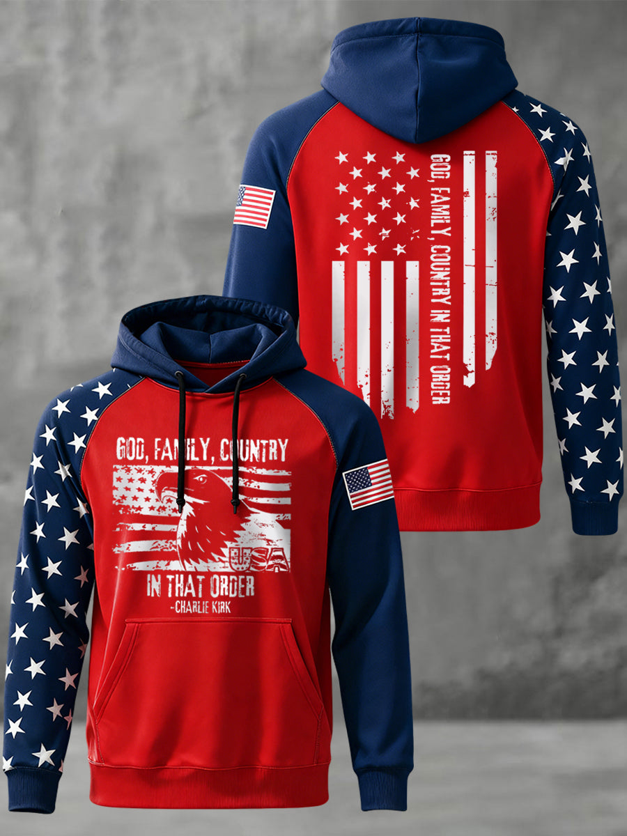 Men's God Family Country In That Order Charlie Kirk Print Hoodie