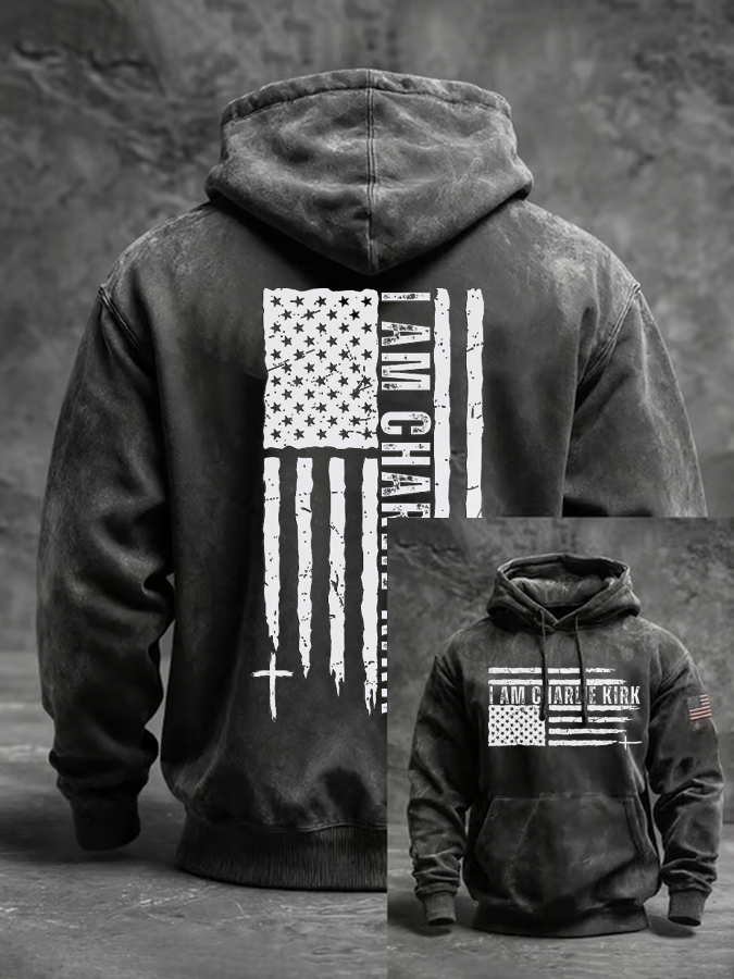 Men's I Am Charlie Kirk Printed Oversized Drop-Shoulder Hoodie with Pockets