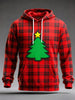 Men's Red Plaid Christmas Tree Print Casual Hoodie