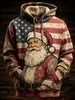 Men's Retro American Flag Christmas Santa Claus Printed Hoodie