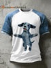 Men's Retro Dog Art Pattern Patchwork Print Casual Short Sleeved T-Shirt