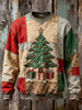 Men's Vintage Christmas Tree Patchwork Print Casual Sweatshirt