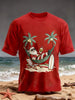 Men's Vintage Holiday Santa Claus Print Casual Tee