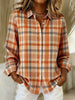 Printed V-Neck Lapel Button Vintage Casual Long Sleeve Shirt