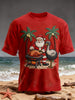 Retro Australian Christmas Beach Emu Print Casual Cotton Short Sleeve T-Shirt