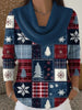 Retro Christmas Colour Block Multicoloured Art Print Cowl Neck Sweater