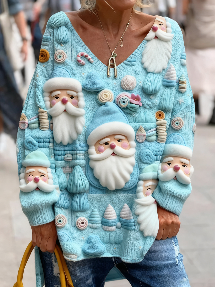 Retro Christmas Fun And Cute Printed Fashionable Crew Neck Top