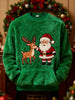 Retro Christmas Grandad Print Plush Crew Neck Sweatshirt
