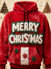Retro Christmas Print Fleece Pocket Hooded Sweatshirt