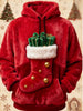 Retro Christmas Stocking Gifts Print Fleece Pocket Hooded Sweatshirt