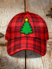 Unisex Christmas Red Plaid Christmas Tree Print Hat