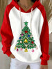 Vintage Christmas Diamond and Pearl Christmas Tree Print Hooded Sweatshirt