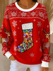 Vintage Christmas Sequined Stocking Printed Casual Loose Long Sleeve Top