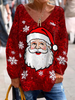 Women’s Christmas Print Casual V-Neck Loose Top