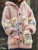 Women's Animal Cat Print Flannel Warm Jacket