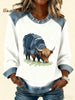 Women's Animal Highland Cow Print Denim Patchwork Top