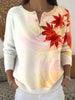 Women's Autumn Creative Maple Leaf Henley neck sweater