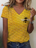Women's Bee Print Casul V-Neck Tee