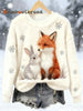 Women's Best Partner Fox And Bunny Print Casual Flannel Hoodie