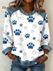 Women's Blue Paw Print Denim Patchwork Sweatshirt