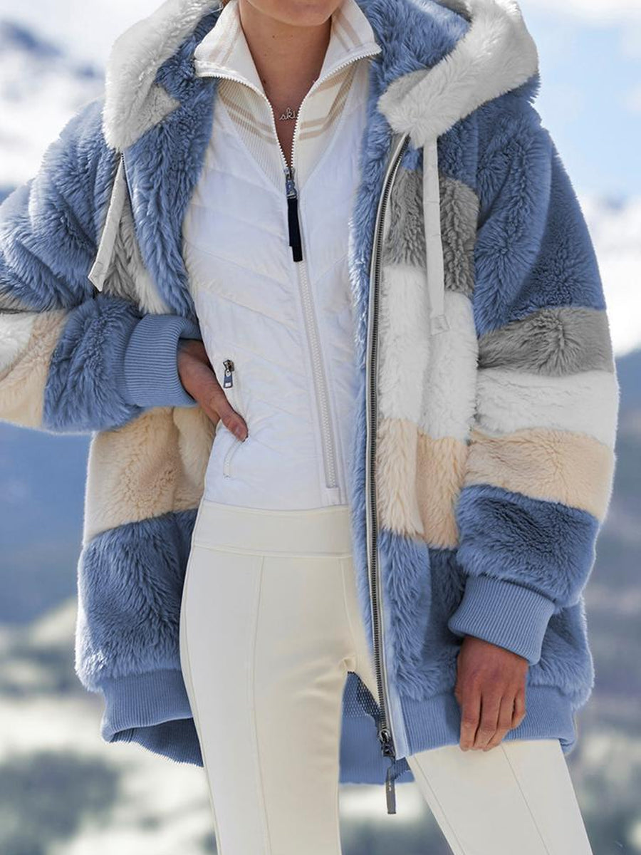 Women's Casual Warm Colorblock Fleece Hoodie