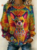 Women's Chihuahua Printed Patchwork Top
