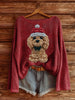 Women's Christmas Cute Pet Printed Drop Shoulder Long Sleeve Antarctic Fleece Sweater