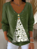 Women's Christmas Funny Cat Christmas Tree V-Neck Ribbed Top