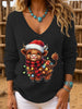 Women's Christmas Highland Cattle Printed Tops