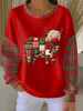 Women's Christmas Highland Cow Patchwork Print Ribbed Round-Neck Sweatshirt