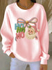 Women's Christmas Ho Ho Santa Claus Art Ribbed Round-Neck Sweatshirt
