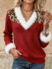 Women's Christmas Leopard Print Casual Fur-Collar Top