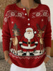 Women's Christmas Santa Claus And Reindeer Print Casual Buttons Long Sleeve Top