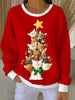 Women's Christmas Tree Cat Loose-Fit Crewneck Pullover