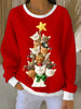 Women's Christmas Tree Cute Cat Art Ribbed Round-Neck Sweatshirt