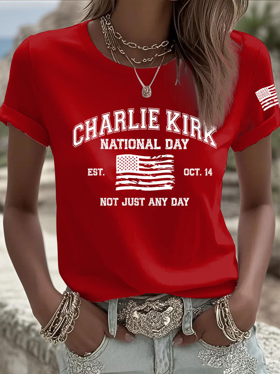 Women's CK National Day Printed Casual T-Shirt