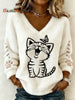 Women's Cute Cat And Paws Flannel V-Neck Top