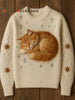 Women's Cute Cat Art Print Casual Crew Neck Sweater