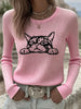 Women's Cute Cat Print Cat Lovers Cat Mom Gift Casual Long-Sleeve T-Shirt