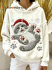 Women's Cute Christmas Cat Art Print Casual Flannel Hoodie