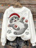 Women's Cute Christmas Cat Art Print Casual Flannel Sweatshirt