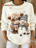 Women's Cute Highland Cow And Snowman Print Casual Flannel Sweatshirt