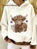 Women's Cute Winter Highland Cow Flannel Hoodie