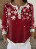 Women's Deep Red Christmas Snowflake Henley neck sweater