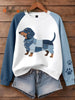 Women's Denim Patchwork Art Dachshund Dog Pattern Sweatshirt