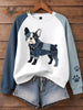 Women's Denim Patchwork Art French Bulldog Pattern Sweatshirt
